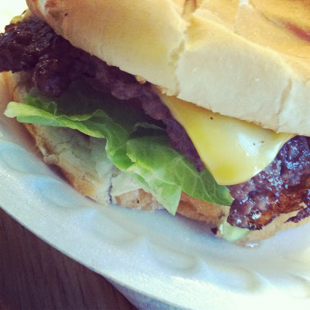 and let's talk a minute about this guy. i always get the single cheeseburger. always. this time i was so hungry i got two. oops.